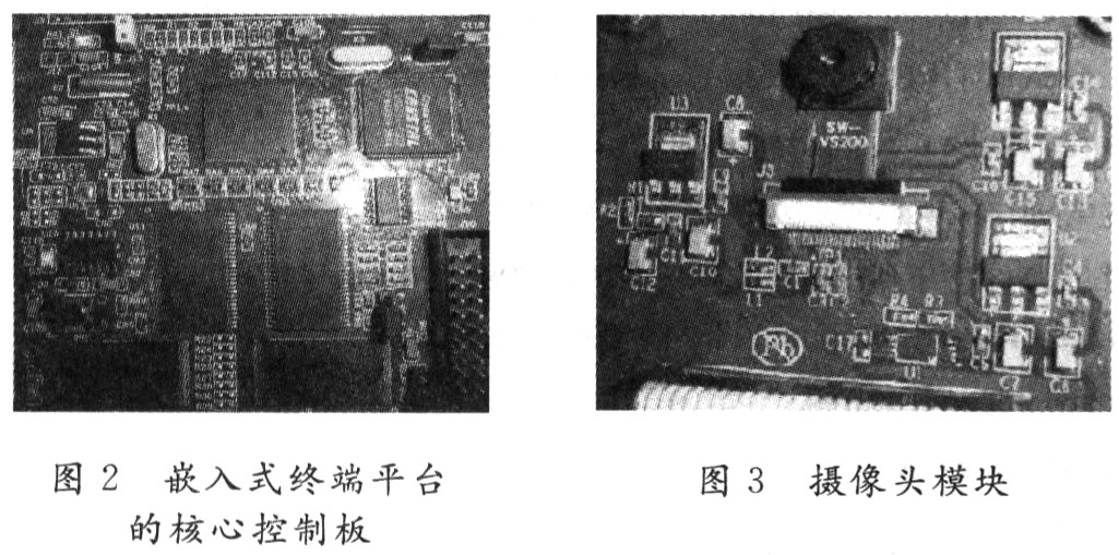 系统首先通过S3C2440微处理器控制CMOS摄像头采集图像数据,经过压缩编码后,再通过GPRS无线发射模块将压缩后的数据发射出去,在服务器端的PC机通过GPRS接收模块接收数据,并通过相应的应用程序,对视频数据进行解码,并通过屏幕显示出来。其中包含有S3C2440微处理器的嵌入式终端平台的核心控制板如图2所示。
