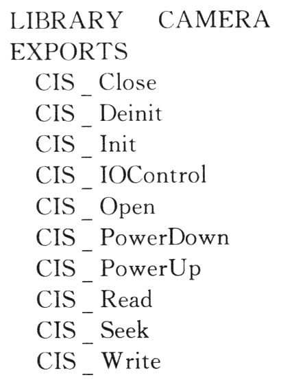 (3)编写DLL的导出函数定义文件.DEF。.DEF文件定义了DLL的导出函数类表。.DEF文件可以就用一般的记事本编辑,保存时后缀名改为.DEF即可,关于本摄像头驱动的.DEF文件内容如下: