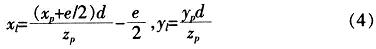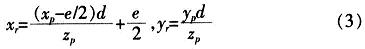 将式(2)带入式(1)得点P在投影平面的坐标(xr,yr):