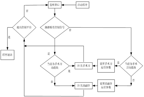 (1)微波刀:手术中微波刀在使用时,用户通过人机交互界面控制微波刀的输出功率,同时系统自动累计微波刀的运行时间,便于病历记录。