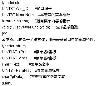 菜单分两种,一种是功能菜单,如图4中的频率菜单、调制菜单。这种菜单只要求显示菜单名,则对应Menu结构体中的ParaFlag=0。另一种菜单为参数菜单,见图4中的参数菜单显示区。每个参数菜单有一个参数名和一个参数值,则对应Menu结构体中的ParaFlag=1,Text指向参数名字符串,pData指向参数值字符串。