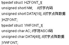 由于标准字库太大,而DDS任意波信号发生器LCD显示的字符只占很少的一部分,因此需要自己制作一个字库。结合LCD显示屏的大小,汉字字符采用16*16点阵,英文字符和数字采用12*24点阵。为了软件操作上的方便,汉字字库和英文字库相互独立。汉字字模和英文字模的定义如下。
