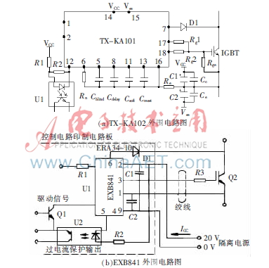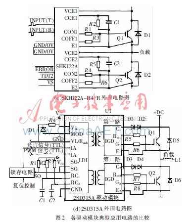图2给出了TX-KA102、EXB841、SKHI22A-H4 R及2SD315A典型外围应用电路[2-3]。
