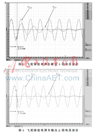 从测试波形可以看出:飞轮储能电源车A、B、C三相输出电压在市电断开瞬间有2.51 ms的异常,而后恢复正常。现场值守人员未发现所保障的负荷异常工作或停机。测试结果表明飞轮储能电源车运行状态良好,可保障所带负荷不间断运行。