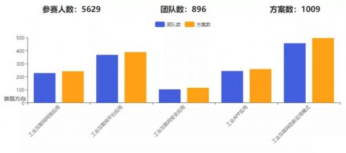 先说一下大赛的总体情况,报名人数超过 5000,共征集项目 1009 项,超过 80%的参赛团队来自工业互联网专业服务商。最终决出 2 个一等奖、6 个二等奖、12 个三等奖。