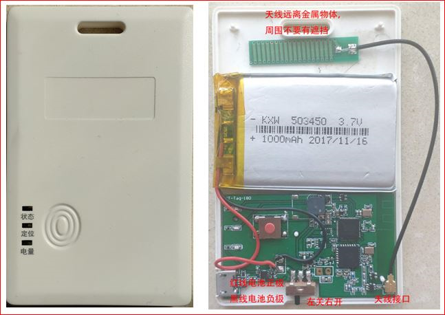 开关:1个(电池供电开关);按键1个,报警:轻按;蜂鸣器1个,报警时持续响,供电1000mAh锂电池,支持USB充电