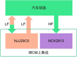 5)无钥匙系统:IBCM方案中,集成了PEPS无钥匙系统,采用NXP的NCK2913、NJJ29C0,作为高低频基站与钥匙端通信,组建无钥匙系统。系统包含IMMO(发动机防盗系统)认证,凭借射频(315MHz、434MHz)的远距离通信,实现REK(遥控门)认证,同时在此基础上实现PKE(无钥匙系统)认证,以上三种认证通信组成PEPS无钥匙系统,功能框图如下: