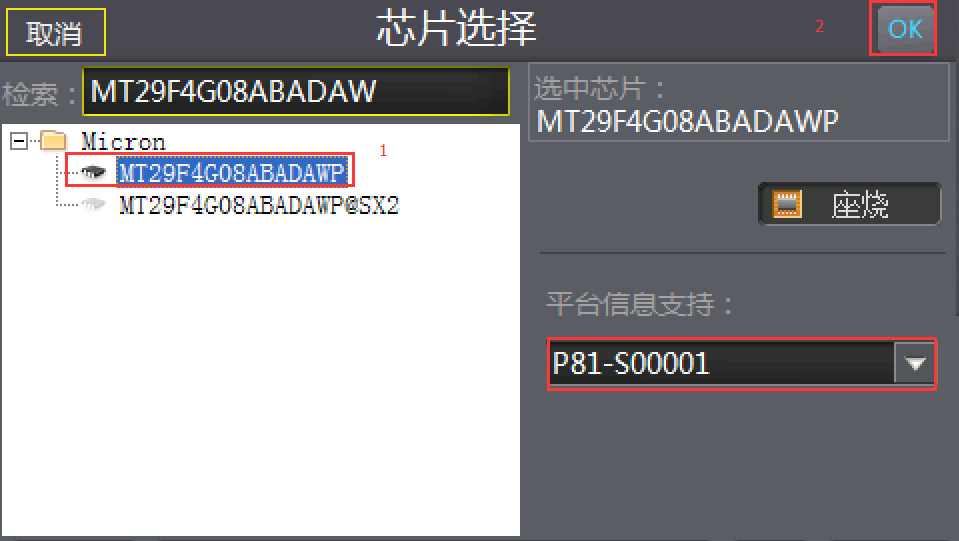 步骤二:选择需求芯片型号