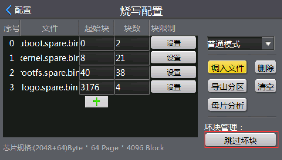 既然NandFlash有坏块是无法避免的问题,那就要想办法避开那些坏块;接下来我们就看解决方案,究竟要如何量产烧录NandFlash