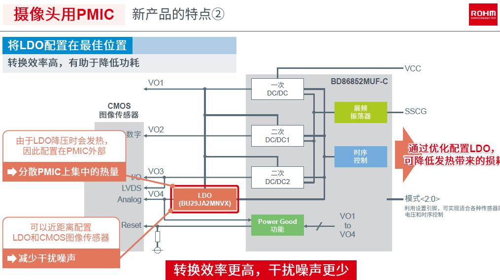 同时,新产品通过I2C可以从CMOS图像传感器串行器反馈至PMIC,并配备了时序控制功能和展频功能,可以有效地去减少客户的电路板面积和针对于EMI的性能。