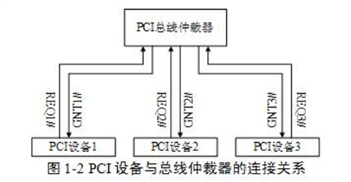 PCI设备使用该组信号进行总线仲裁,并获得PCI总线的使用权。只有PCI主设备需要使用该组信号,而PCI从设备可以不使用总线仲裁信号。这组信号由REQ#和GNT#组成。其中PCI主设备的REQ#和GNT#信号与PCI总线的仲裁器直接相连。