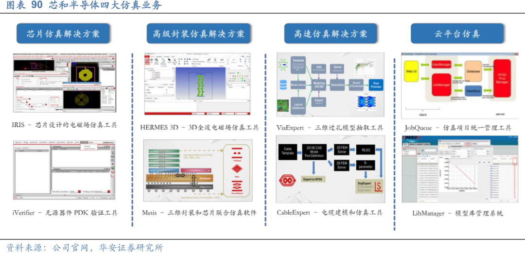 集成电路和射频/微波的自动化设计:大幅提升复杂设计仿真效率。公司的定制集成电路/模拟/射频设计应用范围广泛,包括晶体管级模拟、混合信号、定制数字、内存和RF设计等。主要技术包括:1)Virtuoso System Design Platform:面向集成电路和封装设计的 统一化“系统感知”平台,可以实现跨芯片、封装和电路板并行设计,节省时间并最大程度地减少错误;适合集成多种结构电路类型(包括射频、模拟和数字系统)的设计。2)Custom/Analog Advanced Node:面向20nm及以下工艺定制/模拟设计的创新功能,实现硅片质量、设计效率、准确预测的全面提升。3)混合信号解决方案:实现了技术流程的统一、模拟与数字设计的协同等功能。4)光电设计:集成电子/光子设计自动化环境,可在单一流程中提供完整的光电集成电路解决方案。