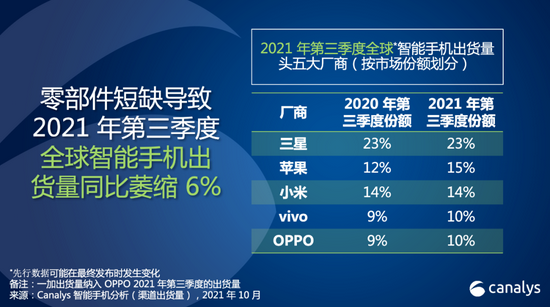 Canalys:零部件短缺导致全球智能手机市场同比萎缩6%