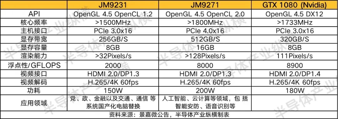 JM9231性能与国际同类公司2016年中低端产品性能相当,主要针对国产化办公电脑,便携式计算机、中低端的游戏机和高端嵌入式系统等消费电子领域。JM9271在JM9231基础上对科学计算能力进行大幅度提高和改进,可以达到国际同类公司2017年中高端产品的性能。