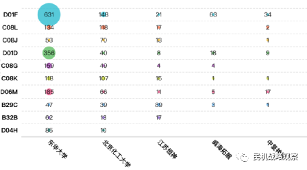 图15 国内碳纤维主要专利技术研制主体IPC分类分布图