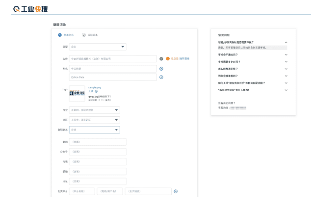 企业词条创建界面(部分图例,以12月上线版本为准)