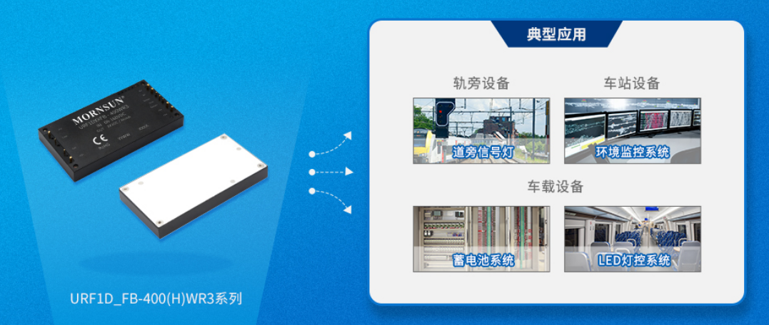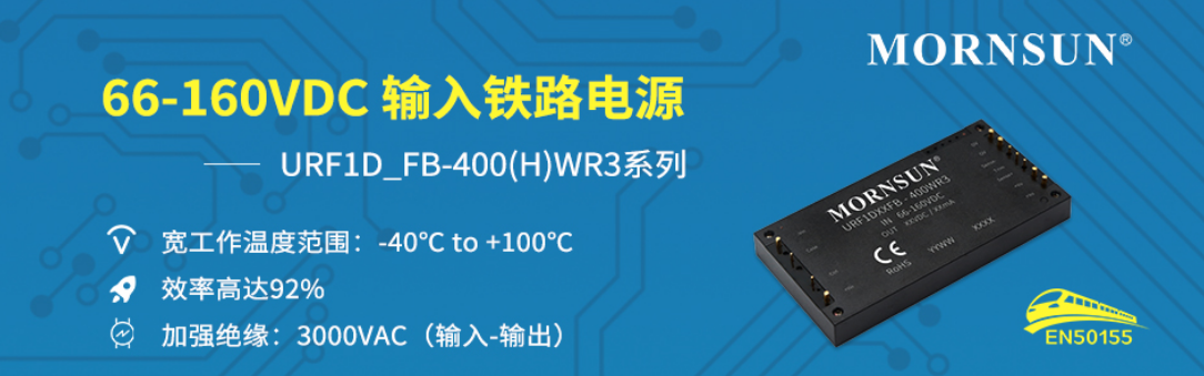 URF1D_FB-400(H)WR3系列是为铁路电源领域设计的一款高性能的产品,输出功率可达400W,无最小负载要求,拥有66-160VDC宽电压输入,允许工作温度高达100℃,具有输入欠压保护、输出过流保护、输出过压保护、输出短路保护、过温保护、远程遥控及补偿、输出电压调节等功能;产品设计满足加强绝缘、EN50155/EN45545认证,采用真空灌封工艺,提升产品可靠性。