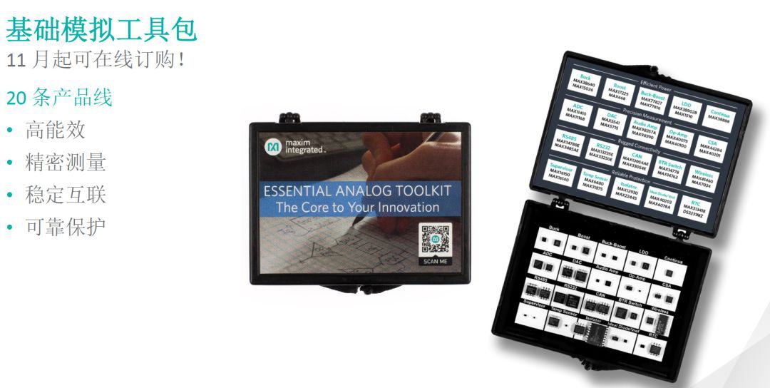 模拟芯片种类多常带给用户烦恼,特别是初级工程师,不过Maxim这次带来了基础模拟工具包,把性能最极致的20款芯片放在一个工具包中,让用户便捷地试用。Maxim网站还提供DC-DC selector工具,帮助用户最快完成电源芯片选型。