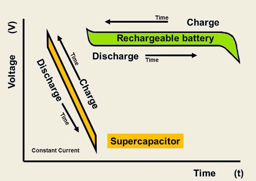 超级电容与传统电池能快速存储大量的能量并迅速释放不同,例如,当火车进站制动时,超级电容可以储存制动产生的能量,并当火车启动需要大量能量时再提供给它。
