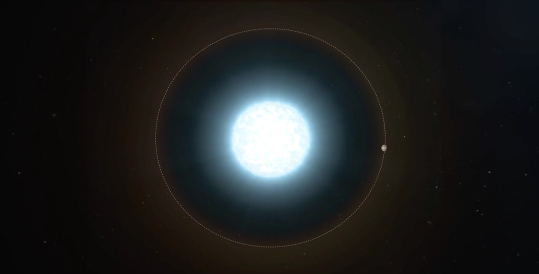 因为人们观测到这颗微行星的轨道周期非常短,转一圈大概只要 2 个小时,所以它距离白矮星应该非常近。果不其然,后来人们测量出它的轨道半径只有 0.0034 个天文单位,不及水星到太阳距离的 1%。