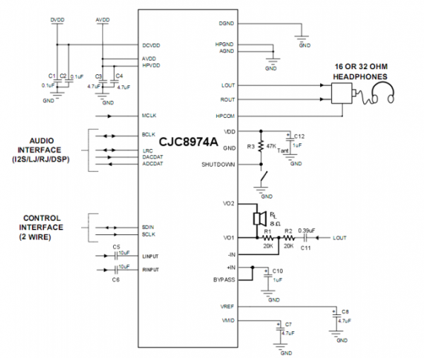 Codec芯片 - CJC8974A具备以下特点: