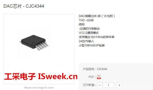由工采网代理的国产DAC芯片 - CJC4344是一款用于便携式多媒体应用的高质量立体DAC芯片。CJC4344是一个完整的、立体声数字-模拟输出系统,包括插值、多位D/A转换和输出模拟滤波。