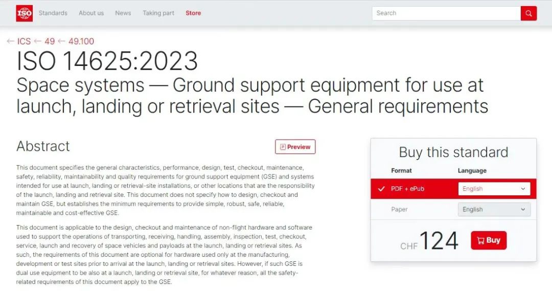 ISO 14625:2023《航天系统一一发射、着陆或回收场地地面支持设备通用要求》对运载火箭发射场地面支持设备的检修、检测和维护要求进行了补充,对地面支持设备的设计、生产、试验等相关要求进行了修订和完善。