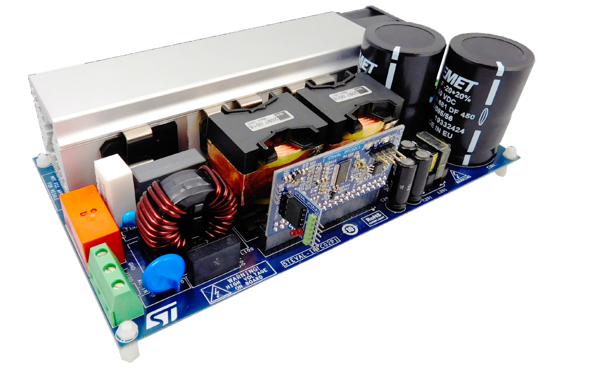 该方案是基于STNRGPF02控制器实现数字功率因数控制, 特点是逐周期电流调节和灵活的数字控制,实现非常高的功率因数和非常低的谐波失真。STNRGPF02是半数字电源芯片,混合信号平均电流模式控制,逐周期调节(模拟流控电制回路);CCM固定频率操作, 开关频率(fsw) 60khz;它是可以驱动多达两路交错PFC通道的CCM模式以及固定频率下的平均电流模式控制方案。