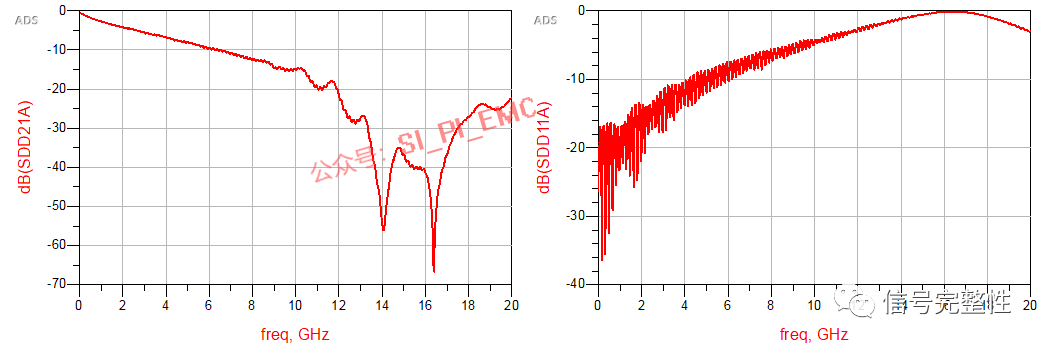上图是按照16Gbps的信号速率获得的眼图结果,显然,存在很大残桩时,其眼图完全闭合,而去掉残桩之后,其眼图张开了。