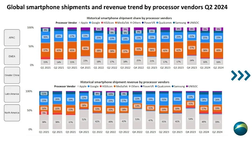 2024年第二季度联发科继续领跑智能手机处理器市场