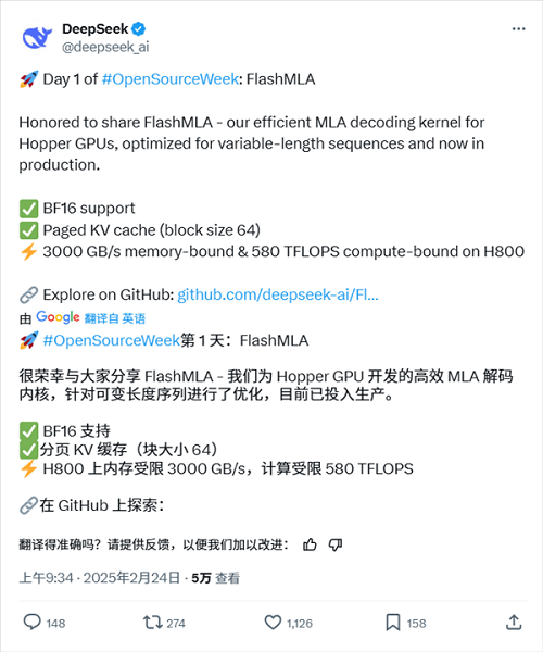 2月24日消息,据报道,DeepSeek宣布启动“开源周”,首个开源的代码库为Flash MLA。
