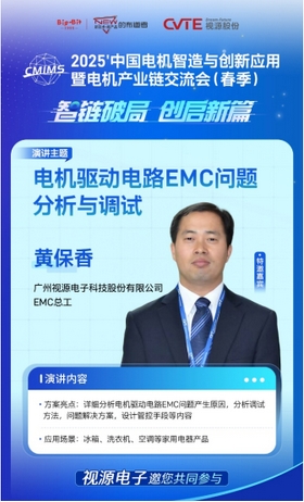广州视源电子科技EMC总工黄保香将带来电机驱动电路EMC问题分析与调试主题分享,详细分析电机驱动电路EMC问题产生原因,分析调试方法,问题解决方案,设计管控手段等内容。