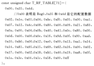 Reg0~28主要是配置发射功率、VCO、RSSI、接收延时、通道选择与控制、AMS测试及控制、BPF和AGC控制、发射与接收数据控制、直流漂移控制、PLL同步控制、数据收发的时序控制、N/VCO参数控制、时钟等。Reg0~28详细配置数据如下: