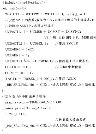 MSP430F247通过SPI接口与EMl98810相连,进入LPM3模式和退出LPM3模式的程序如下: