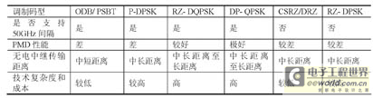 表1 40Gbit/s WDM系统常用码型比较表