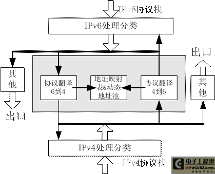 报文翻译部分是NAT_PT的最基础部分。它负责进行IPv4和IPv6报文之间的翻译。具体的实现主要针对TCP、UDP和ICMP三种不同类型的报文进行翻译。由于TCP自己的特性,在地址映射的时间上,还有TCP建立连接的时候,对动态地址池的操作都和UDP、ICMP有所区别。