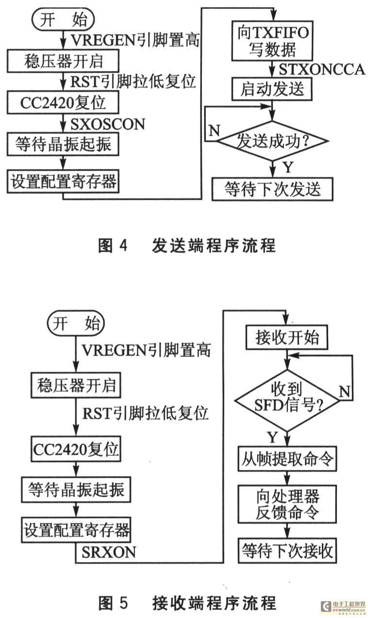 发送端和接收端程序流程分别如图4和图5所示。