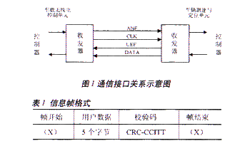 考虑到测速定位单元的工作环境及通信功能需求,在选择该单元与车载无线电系统之间的通信方式时,经过分析,本研究采用了传输速率较高的同步通信方式,并使用屏蔽性能较好的双绞线实现RS-485平衡型差分传输。