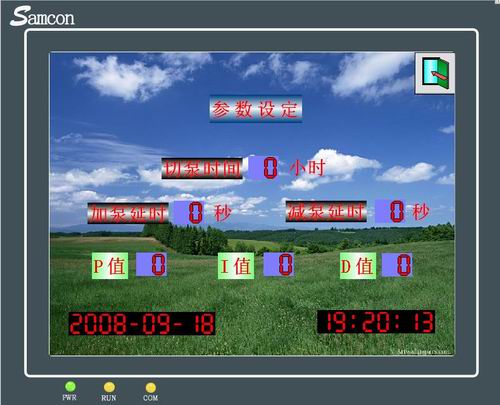 点击时间后的数字可以弹出软键盘,在软键盘中设定切泵时间,单位为小时,设定后轻压“Enter”确认。按上面的方法依次设定加泵时间和减泵时间,单位为秒;用同样的方法对P、I值进行设定。
