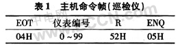 从机通信协议以巡检仪为例简述如下:波特率设置为2 400 bit/s,帧格式为1个起始位,8个数据位,1个停止位。巡检仪采用ASCII码传输,其下传命令帧格式如表1所示,仪表返回数据帧如图4所示。每个通道的测量值为16位二进制,最高位为测量值的符号标志位,1为负,0为正。接收到返回数据后,在程序中按照协议对其进行相应的处理。