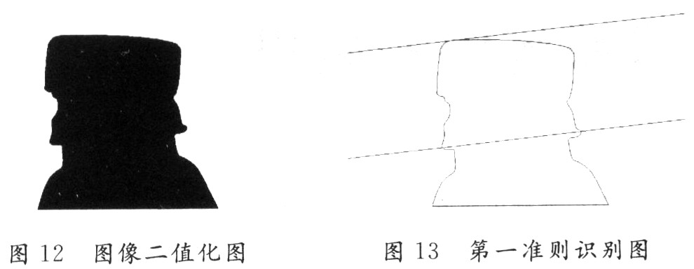 图12和图13为歪盖情况经二值化后的效果图与以第一准则识别的功能图。