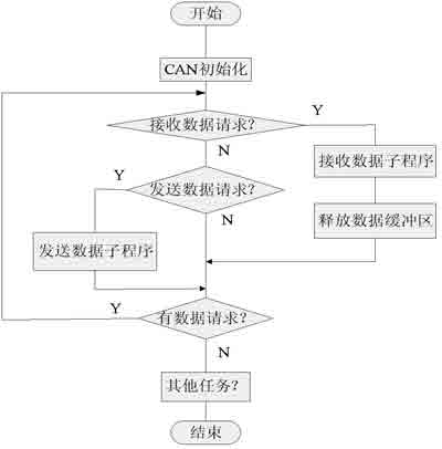 系统中各个ECU通过CAN总线发送接收命令,实现相互通信,从而实现数据的共享等。软件设计基于DAVE和KEIL软件编写,程序主要由CAN初始化、发送数据和接收数据三部分组成,如图5所示。