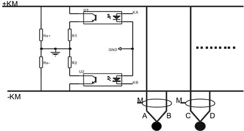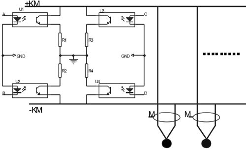 1、 接地极性判断:|u+|+|u-|=a(a为常数,正负母线间电压),故当正母线接地或支路B、D点接地时,U+的绝对值会减小,U-的绝对值会增加;当负母线接地或支路A、C点接地时,U+的绝对值会增加,U-的绝对值会减小,从而我们可以得出母线接地情况;根据M点的电压值(当没有接地时,电压接近零伏;正接地时,输出正电压;负接地时,输出负电压。),便可获知是哪个支路接地和其接地极性,