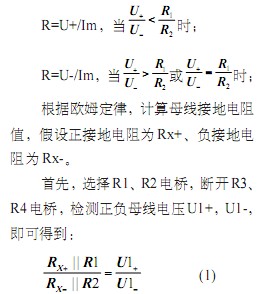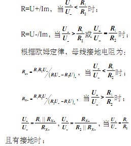 由方程1和方程2组成的方程组,即可求得母线接地电阻Rx-、Rx+。