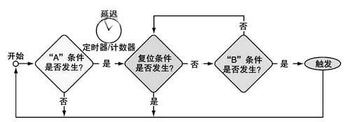 源自电脑编程领域的IF-THEN-ELSE构成了这类触发结构的概念模型。如图1所示,这些语句还包括其它判定符(如A和B之间的定时器/计数器)。不管B事件是否发生,在A事件之后随时都可以发生复位。
