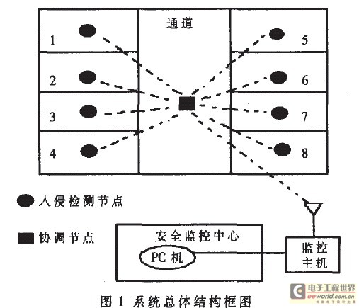 近年来随着科技的发展和人们安全防范意识的提高,基于红外线技术的入侵检测及报警技术已开始应用到防盗系统中[1]。现有的红外入侵检测系统多采用有线技术进行联网。这类方案的缺点是扩展性能差,布线繁琐,当线路老化或遭到磨损时,误报警率高。采用无线传输方式构建的无线入侵检测网络则可以避免这些问题。相对而言,无线方式比较灵活,可以适应移动或变化的需要。但是,无线通信技术在安全领域的应用相对还是很少。