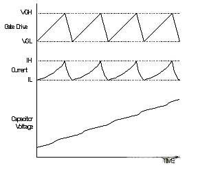 图4两相开关的原理是开关MOSFET在VDS高电压时,以较小电流对板上电容进行充电,然后当电容部分充电后,电流增加,MOSFET电压VDS降低。