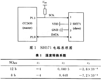 式(1)是相对湿度的计算公式,是微处理器读到的湿度值,参数的值如表1所示。