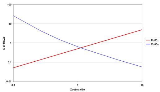 图6 选取 LO 和 CO 后,便可从最大允许源极阻抗范围内选择 CD 和 RD |