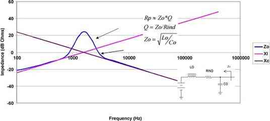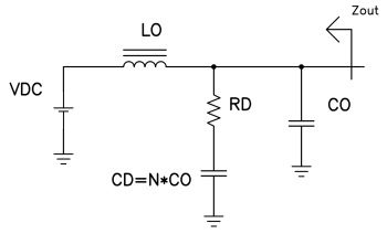 大多数情况下,峰值电源阻抗可以通过首先确定滤波器 (Zo) 的特性阻抗来估算得出,而滤波器特性阻抗等于电感除以电容所得值的平方根。这就是谐振下电感或者电容的阻抗。接下来,对电容的等效串联电阻 (ESR) 和电感的电阻求和。这样便得到电路的 Q 值。峰值电源阻抗大约等于Zo乘以电路的Q值。
